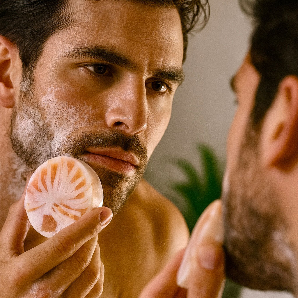 Lather the Golden Aura Zinc Bar between hands with warm water until creamy. Gently massage onto damp facial skin in circular motions, then rinse and pat dry. For best results, follow with EthoSun Hydration Face Stick or your preferred moisturizer.
